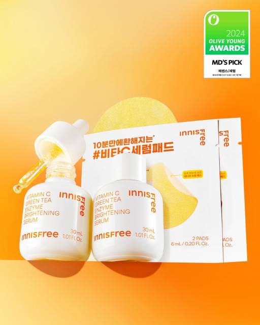 이니스프리는 올리브영 MD’s Pick 선정을 기념해 전국 올리브영 매장과 온라인몰에서 오는 12월 31일까지 최대 31.1% 할인 프로모션을 진행하며, ‘비타C 7일 톤업 세럼 30ML+30ML+패드 4매입’으로 구성된 2024 어워즈 한정 기획 세트도 만나볼 수 있다. 브랜드 공식 인스타그램에서 해당 기획 세트를 증정하는 이벤트도 운영할 계획이다.