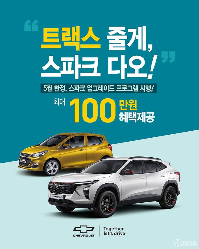 해당 프로모션의 대상 차종은 쉐보레 브랜드로 판매된 모든 스파크 모델이다. 쉐보레는 고객이 전국 대리점을 통해 운행하던 스파크 중고차를 처분하고, 동시에 트랙스 크로스오버를 구입해 5월 내 출고하면 중고차 시세에 따라 최대 100만 원의 혜택을 제공한다.