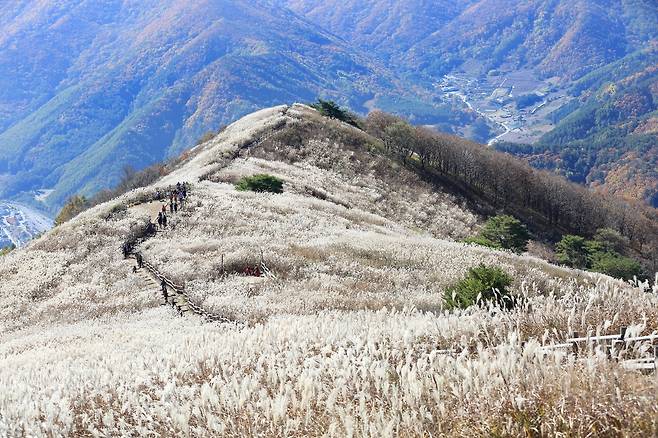 정선 남면의 해발 1,119m에 솟아있는 민둥산은 전국 5대 억새 군락지 중 한 곳으로 알려져 있다. 산의 8부 능선부터 정상까지, 총 66만여km의 광활한 능선은 억새로 빼곡히 덮여있다.