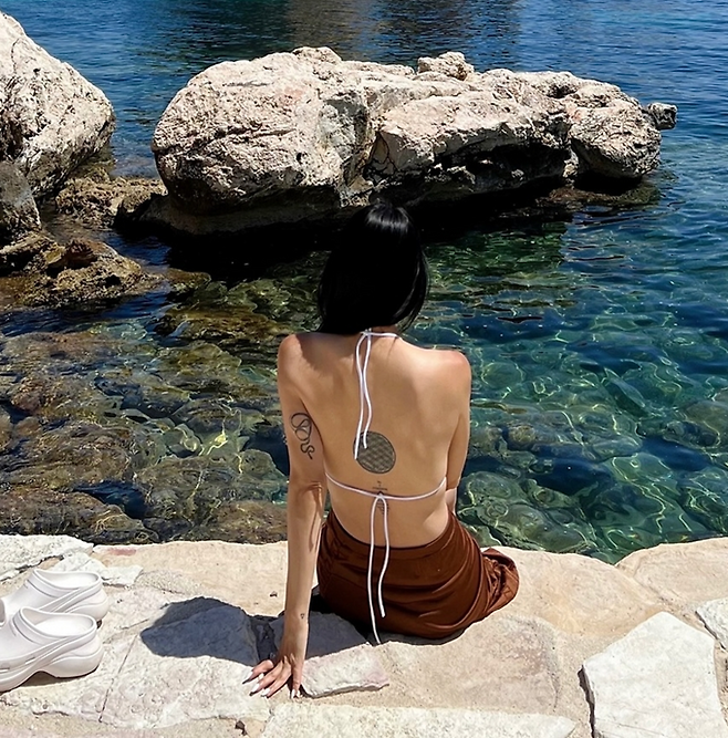 특히 전날 공개한 사진에서 한예슬은 에메랄드빛 바다와 이국적인 절벽을 배경으로 상큼한 컬러 조합의 비키니 톱과 하이슬릿 롱스커트를 매치한 관능적인 리조트룩으로 시선을 사로잡았다. 탄탄하고 군살 없는 몸매와 등에 새겨진 큼직한 타투가 감탄을 자아냈다.