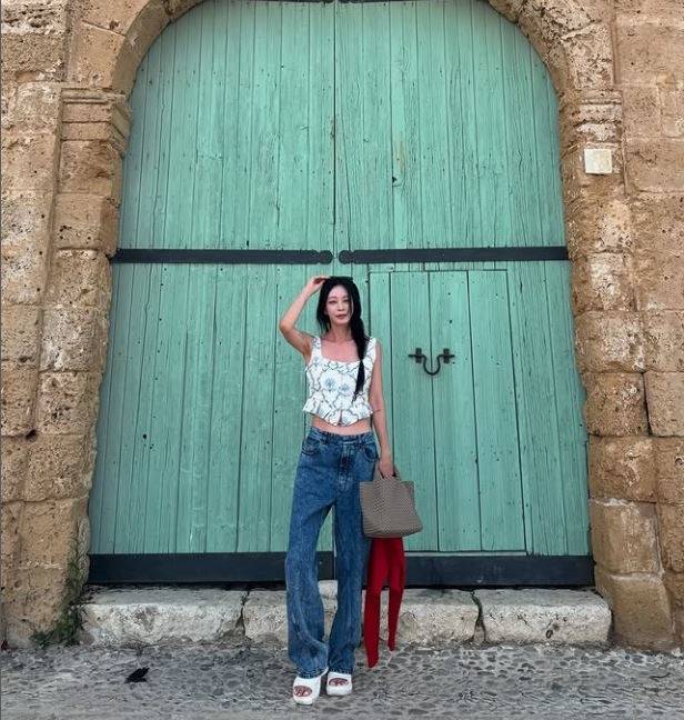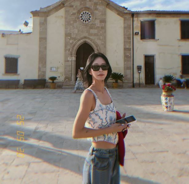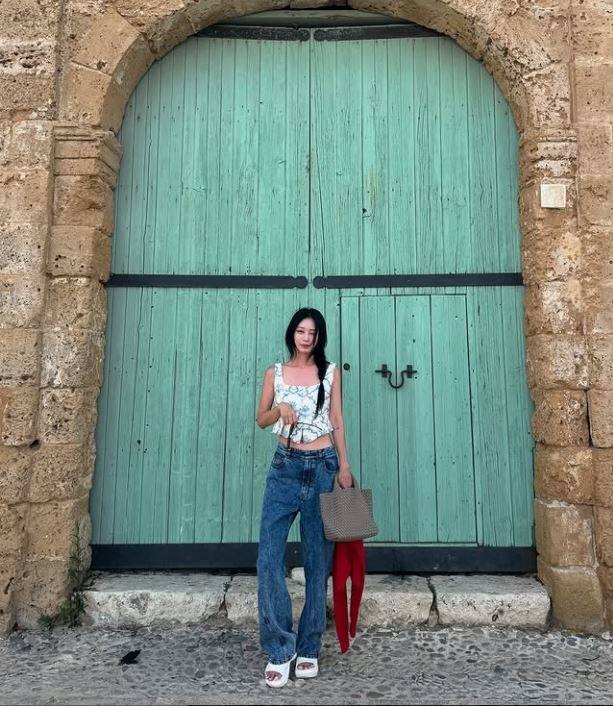 공개된 사진 속 한예슬은 한예슬은 이국적인 프린트의 민소매 크롭탑과 루즈한 데님 팬츠를 매치한 감각적인 섬머룩으로 이탈리아의 고풍스러운 배경을 뒤로하고 여유로운 일상을 즐기고 있는 모습이다.