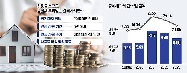 자녀가 별다른 소득이 없는 경우도 유의해야 한다. 2017년 아버지로부터 비상장 주식을 증여받은 A씨는 이듬해 4월과 7월 두 차례에 걸쳐 증여세를 냈다. 과세당국은 A씨에게 별다른 근로소득이 없다는 점을 수상히 여기고 그가 낸 증여세의 출처를 조사했다. A씨가 납부한 세금은 차용증을 쓰고 아버지에게 빌린 돈이었는데, 과세당국은 이를 사실상 증여로 보고 증여세를 매겼다.