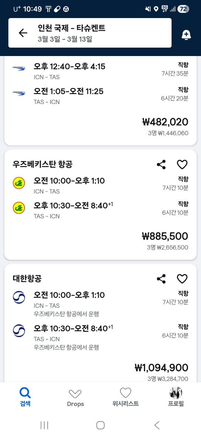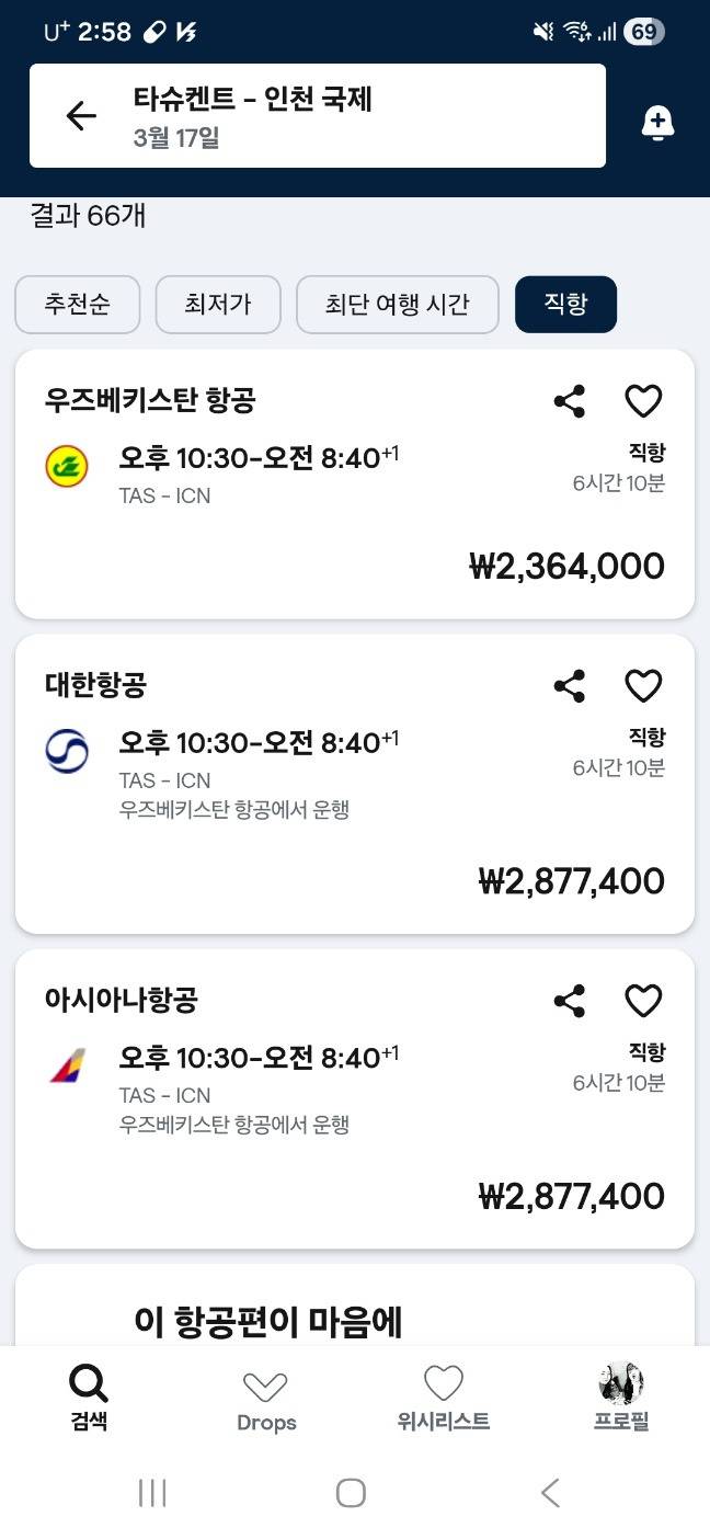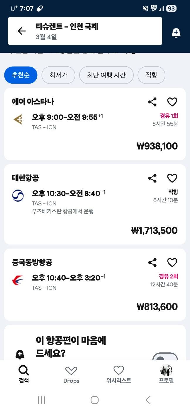 그렇게 갑자기 타슈켄트에서 인천으로 오는 항공 노선이 너무도 뜨거워진 상태.....