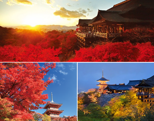 특히 가을에는 야간 개장을 진행하고 있어 야경을 즐기기에도 제격입니다. 기요미즈데라의 단풍은 11월부터 12월 초까지 만날 수 있습니다. 이 외에도 교토의 도후쿠지 절, 철학의 길, 니조성 등에서도 일본 단풍을 즐겨보시길 추천드립니다.