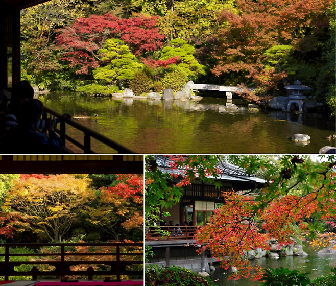가을이면 이곳에는 약 150그루의 단풍나무가 물드는데요. 오색찬란한 단풍과 함께 정원의 중앙에 있는 연못의 풍경이 조화를 이루게 됩니다. 특히 연못에 단풍이 반사된 풍경을 연출해 마치 그림과도 같은 분위기를 풍기죠.