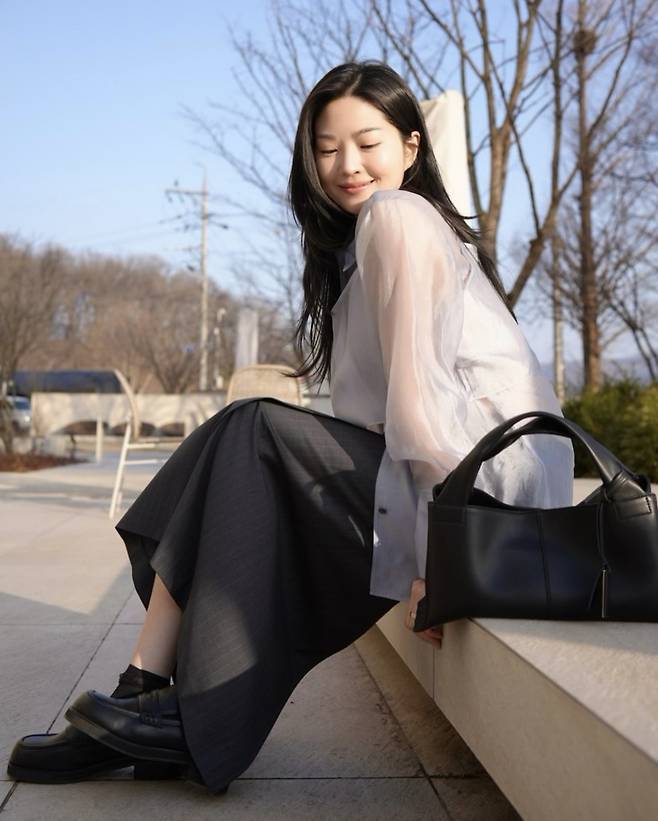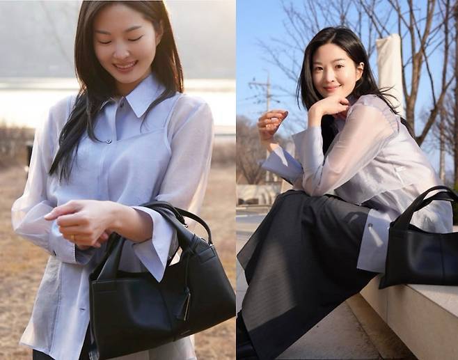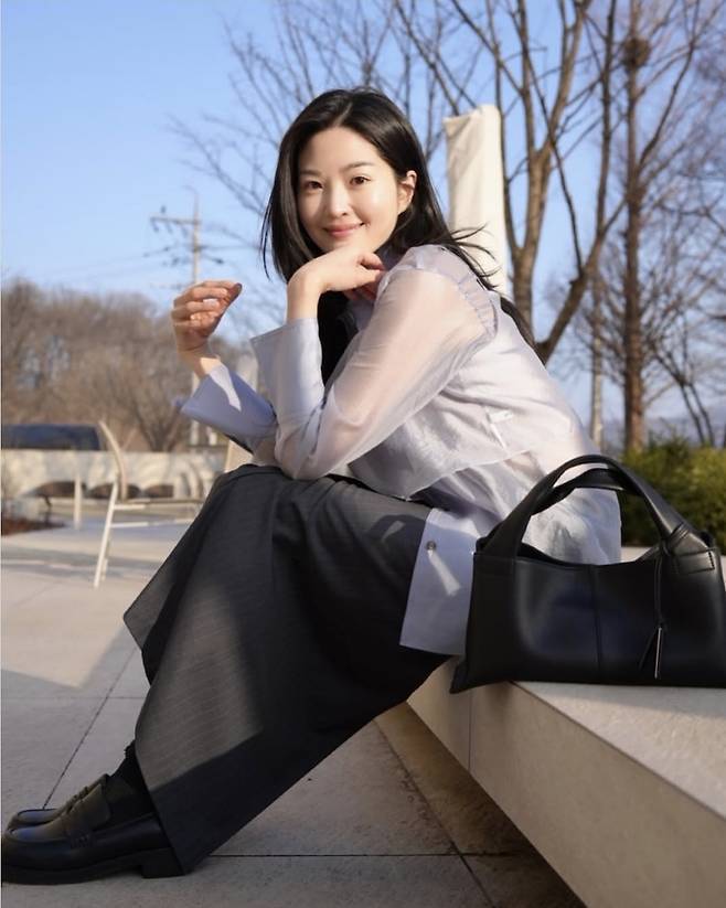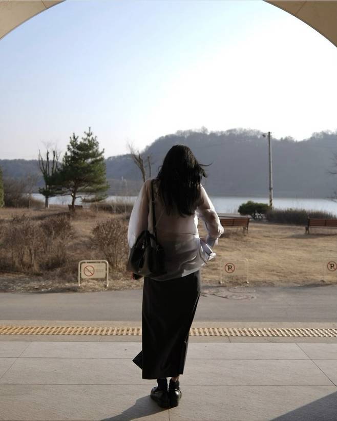 블랙 로퍼와 미니멀한 쉐입의 블랙 토트백으로 전체 무드를 정돈한 류이서는, 바람에 살랑이는 긴 머리와 자연스러운 미소로 고요한 여신 분위기를 자아내며 눈길을 끌었습니다.