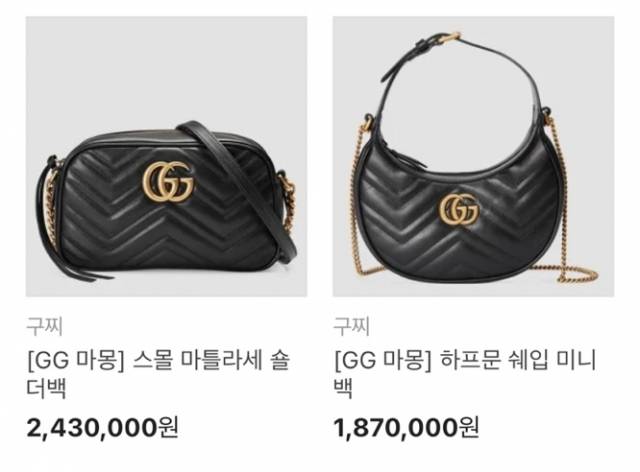 특히 럭스관 한 카테고리에는 ‘구찌’가 단독으로 자리잡고 있다. 구찌의 ‘스몰 마틀라세 숄더백’은 243만원에, 같은 브랜드의 ‘하프문 쉐입 미니백’은 187만원에 올라와 있다.