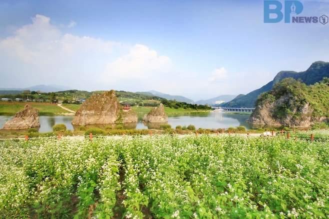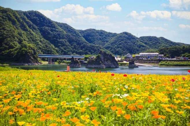 이 곳은 단양군과 수자원공사가 협력하여 2022년 부터 방치된 댐 저수지역 4만㎡를 아름다운 사계절 꽃 정원으로 변모시켰다.