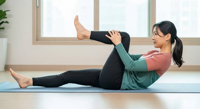 2. 복횡근과 내복사근을 강화하는 '싱글 레그 스트레칭'