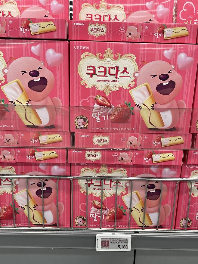 잔망루피 캐릭터 패키지에 딸기&요거트 조합이라 발렌타인데이 시즌에 시선 끄는 선물형 간식이에요.