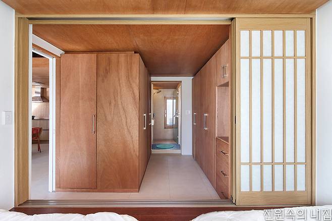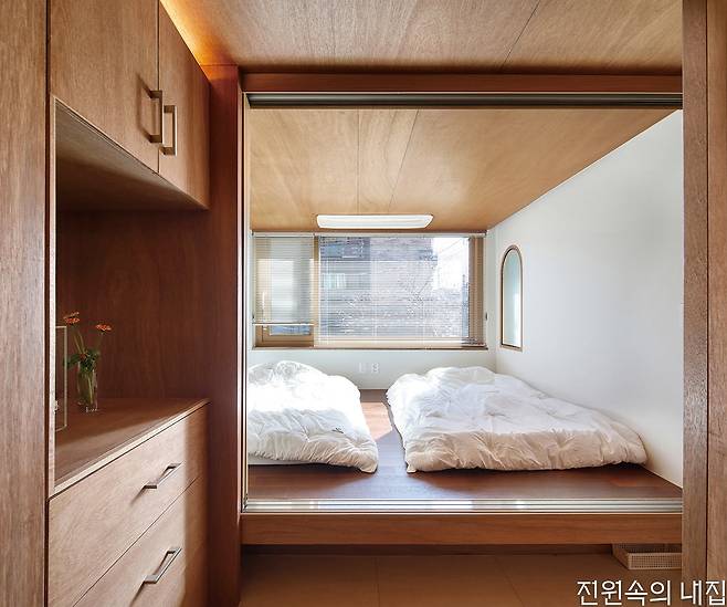 내부 공간도 재구성되었다. 1층과 2층의 출입 동선을 명확히 구분하고, 1층은 손님들이 머무는 공간으로, 2층과 다락은 부부의 생활공간으로 나누었다. 가족과 친구들의 방문이 잦고, 때로는 오래 머무르기도 하는 라이프스타일을 고려해 각 공간을 독립적으로 활용할 수 있도록 설계한 것이다. 특히, 1층에는 손님들의 프라이버시를 고려하여 방과 욕실을 하나의 유닛으로 구성한 두 개의 독립적인 유닛을 배치했다.