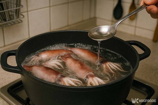 삶는 시간은 짧게, 식초량은 소량으로 조절해야 한다. 너무 많은 식초를 넣으면 신맛이 오징어에 배어들 수 있기 때문이다. 오징어 2~3마리 기준으로 물 1L에 식초 1~2스푼 정도가 적당하다.