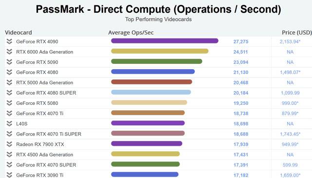 신뢰도가 높은 'PassMark' 사이트에 따르면, RTX 5090과 RTX 5080은 이전 세대인 RTX 4000 시리즈보다 낮은 성능을 보이는 것으로 나타났다.