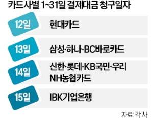 카드 값, 12·13·14·15일 결제 땐 '대금=전월실적'