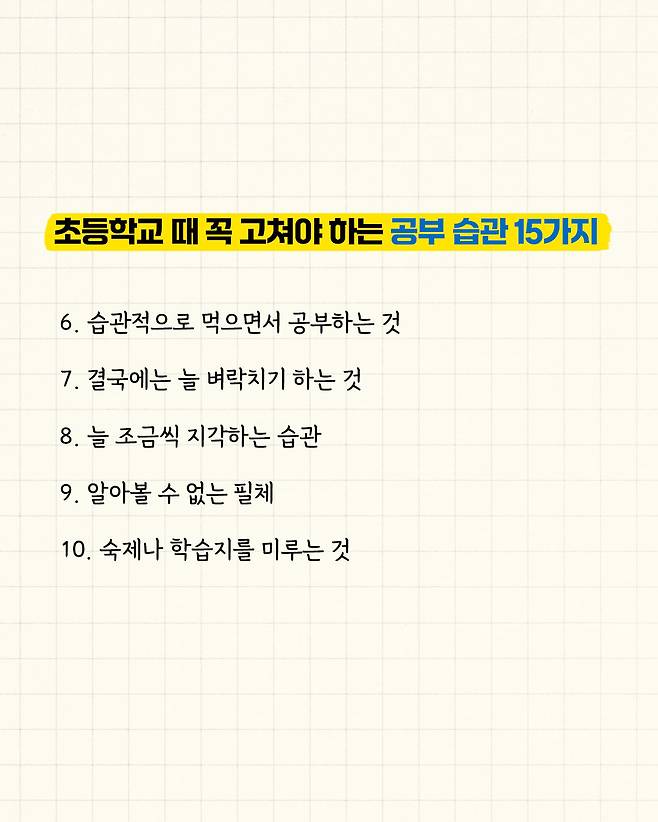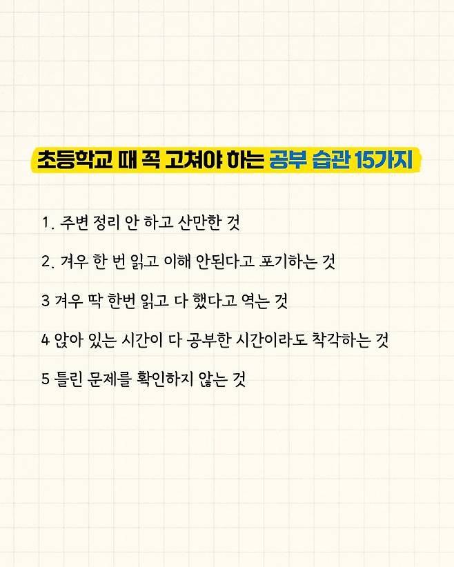 초등학교 때 꼭 고쳐야 하는 공부 습관 15가지