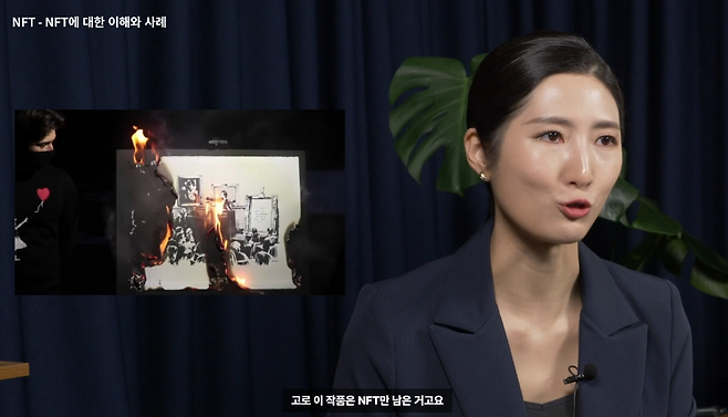 많은 사람들이 실물 그림이 아닌 NFT 그림에 회의감을 가졌던 것은 사실입니다. 하지만 미술계에서는 NFT 그림의 가치를 높이기 위한 모험적인 도전을 계속했습니다. NFT 플랫폼인 번트파이낸스는 한화로 약 1억 원에 뱅크시 작품을 구입을 해서 NFT 그림만 남겨 둔 후, 실물 그림은 태워버렸습니다. 그리고 그 후 NFT 그림은 무료 4배의 가치인 4억 원에 판매되었습니다.