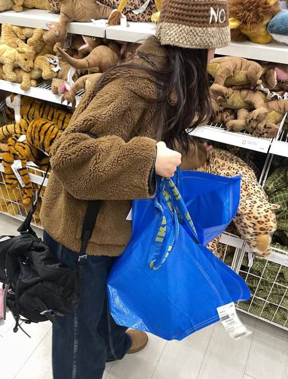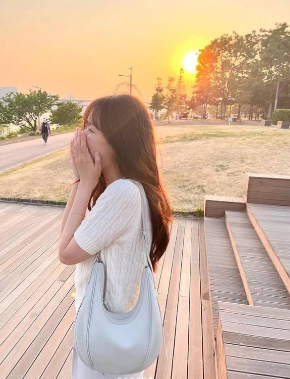 모나지 않은 쉐입의 가방이 룩의 가벼운 무게감과 일치하네요.