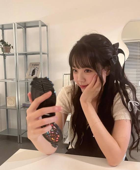 앞에서도 보이는 헤어의 리본은 앙증맞은 포인트. 너무 사랑스럽죠?