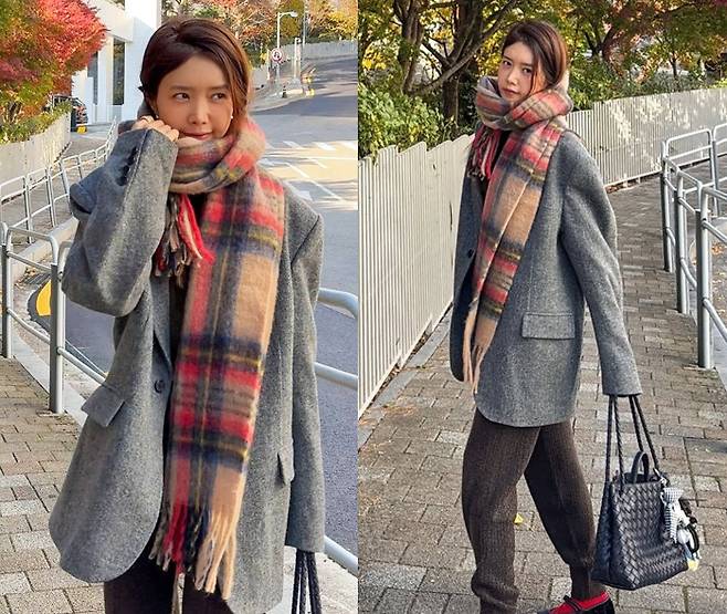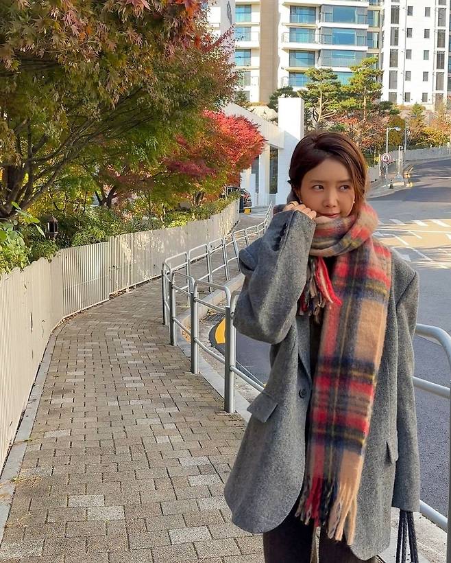 특히 채정안은 체크 패턴의 큼직한 무지개 목도리를 둘러 한층 따뜻한 분위기를 더했습니다.