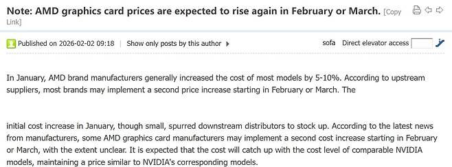 문제는 경쟁사의 움직임입니다. 엔비디아 지포스 RTX 5060 Ti 16GB는 이미 시장에서 거의 700달러에 거래되고 있습니다. AMD가 가격을 올리면 상대적 가성비 우위가 줄어듭니다. 하지만 안 올릴 수도 없는 노릇이죠. 메모리 원가가 실제로 오르고 있으니까요.