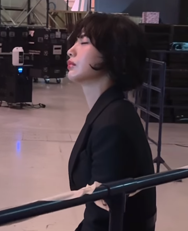 점프수트의 허리에는 벨트 디테일이 더해져, 허리 라인을 강조하며 세련된 실루엣을 완성해 주었어요. 벨트는 점프슈트에 자연스러운 구조감을 부여하고, 나나 님의 슬림한 허리 라인을 강조하며 더욱 우아하고 세련된 느낌을 주었죠.