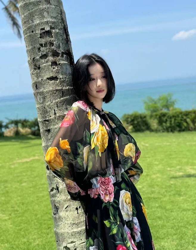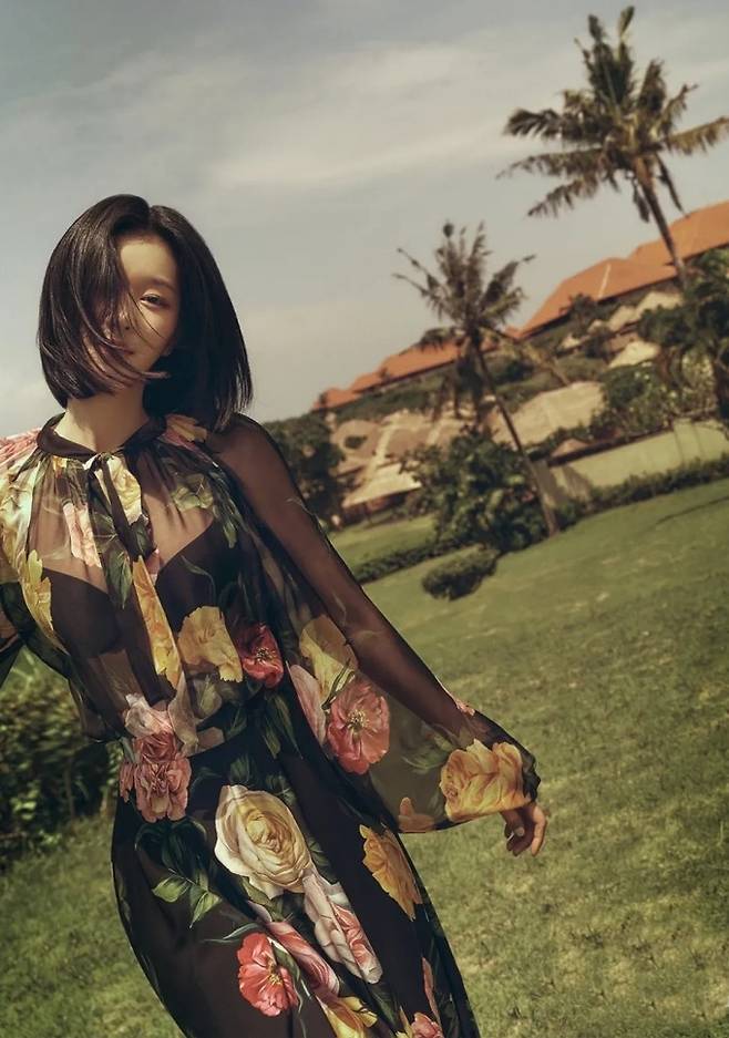 공개한 사진에서 서예지는 단발 헤어 스타일에 화려한 꽃무늬 디자인된 블랙 시스루 원피스를 입고 단아하면서도 우아한 여성미를 뽐냈다.