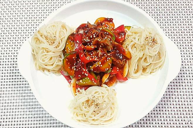 한번 먹어보니 새콤달콤 양념에 아삭한 야채, 쫄깃한 골뱅이가 한데 어우러져 정말 맛있어요. 식당표 골뱅이 무침 부럽지 않는답니다. 소면도 밑간을 해서 같이 드시면 훨씬 맛있습니다.^^*