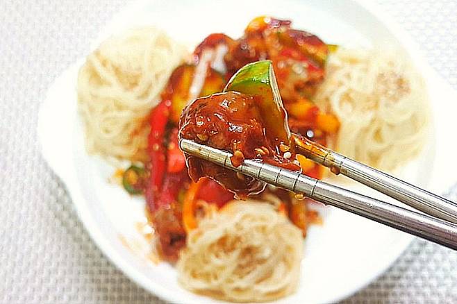 골뱅이무침에 중요한 양념은 고추장, 설탕, 식초 비율을 무조건 1:1:1 비율로 맞추세요.
