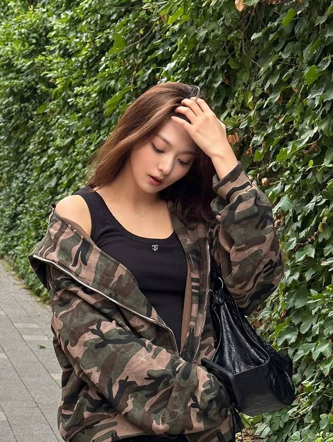 댓글 창에는 “카모 재킷 이렇게 예쁠 수 있나요?”, “올 블랙 코디에 러플 포인트 미쳤다”, “스타일 따라 하고 싶다” 등 반응이 이어졌다.
