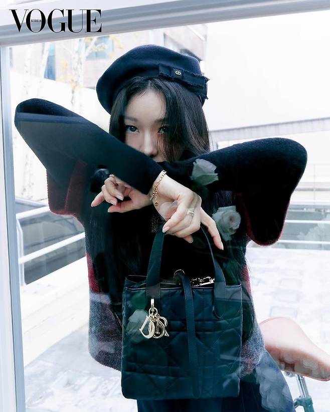 디올 로고가 박힌 블랙 베레모는