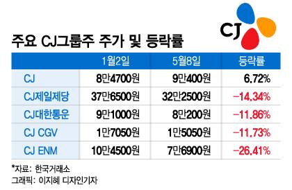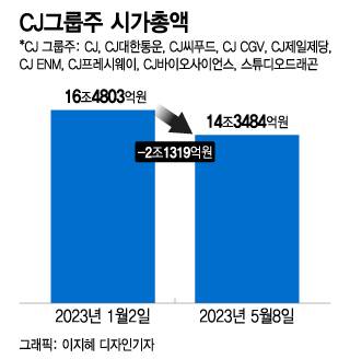 올해 들어 CJ그룹 상장사 시가총액이 2조원 넘게 증발했다.