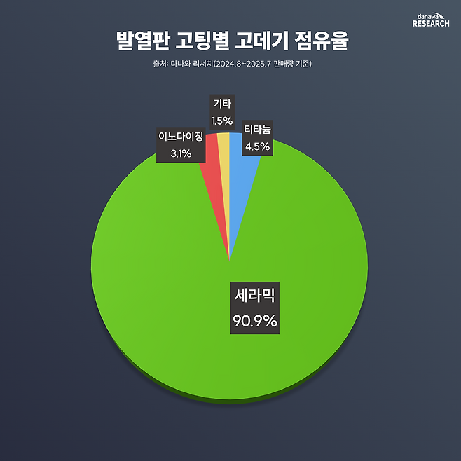 발열판 코팅은 상대적으로 관심이 덜한 영역이지만, 실제 시장을 보면 이야기가 달라진다. 현재 판매되는 고데기의 90% 이상이 세라믹 코팅으로 사실상 표준이 된 상황이다. 소비자가 특별히 신경 쓰지 않아도 대부분 세라믹 제품을 사게 되는 구조인 셈이다. 세라믹은 열이 균일하게 전달돼 머릿결 손상을 줄이고 가격대도 안정적이어서 제조사 입장에서도 가장 무난한 선택지다.