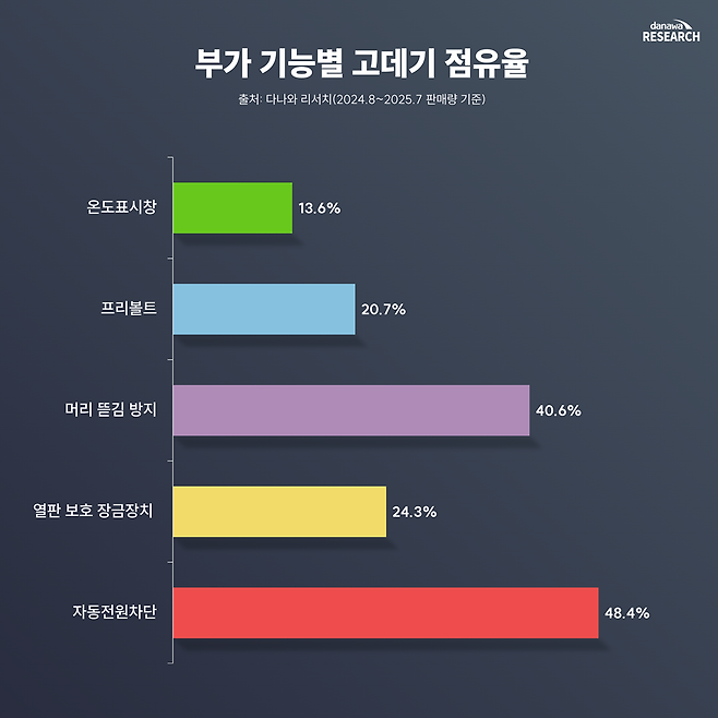 고데기 부가기능 가운데 가장 보편적인 건 자동 전원 차단이다. 실제로 판매된 제품의 절반가량이 이 기능을 탑재하고 있어, 소비자들이 '불이 날까 걱정'하는 마음을 덜어주는 역할을 한다.