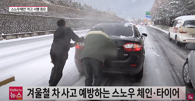 겨울철 자동차 사고를 줄이고 피해를 최소화하는 방법으로 스노우 체인, 스노우 타이어 장착 등이 꼽힙니다.