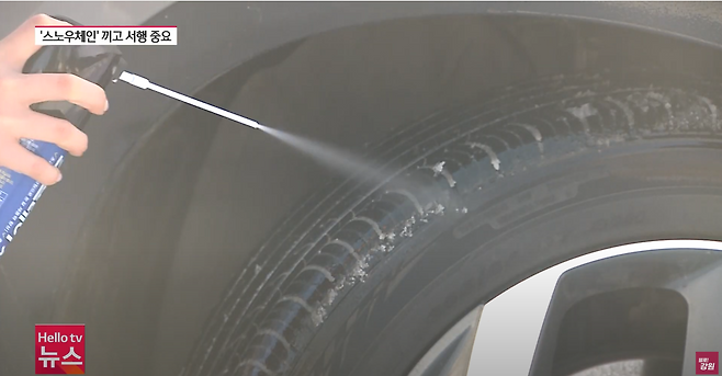 갑자기 눈길을 만났을 상황에서는 스프레이를 뿌려 일단 안전한 곳까지 간 이후에갑자기 눈길을 만났을 상황에서는 스프레이를 뿌려 일단 안전한 곳까지 간 이후에 물리적인 체인을 끼우는 것도 하나의 눈길 안전 운행 방법입니다.