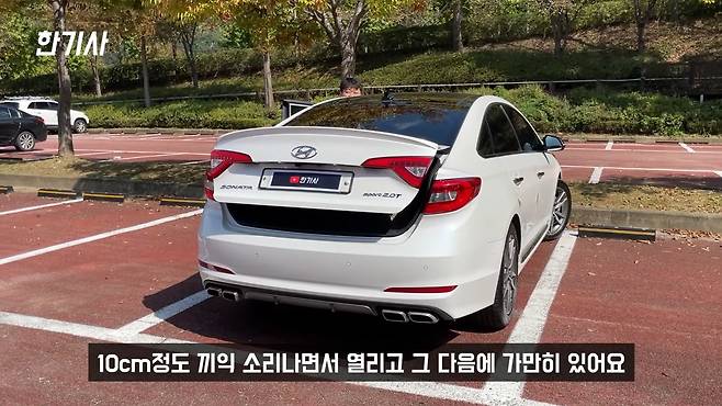 또 다른 단점은 트렁크 열림 버튼을 누르면 원래 트렁크가 스프링 장력 때문에 좀 활짝 올라가잖아요. 근데 얘는 그런 게 없어요. 10cm 정도 '끼익' 소리 나면서 열리고 그다음에 가만히 있어요. 이러면 아무래도 좀 모양 빠지죠. 전동 트렁크까지 바라는 것도 아니고 그냥 잘 열려야 되는데 애매하게 열리다가 그냥 멈춰있는 거죠.