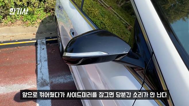 이거는 모든 LF 쏘나타의 단점 아닐까 싶은데요. 사이드미러 '끼익' 소리, 저도 당첨됐습니다. 어쩔 수 없어요. 'LF 쏘나타 사이드미러'라고 검색을 하면 유튜브에도 해결 방법이 올라가 있을 정도는 진짜 많거든요. 저도 당첨이 돼서 가끔씩 '끼익' 소리가 나는데, 그럴 때 앞으로 미러를 꺾어줬다가 잠그면 당분간 소리가 안 나요. 저도 해보니까 도대체 어떤 원리인지는 모르겠는데 진짜 안 나요. 이런 게 고질병이고 리콜인데, 이런 거를 리콜을 안 해주고 현대는 뭐하고 있나 싶죠.