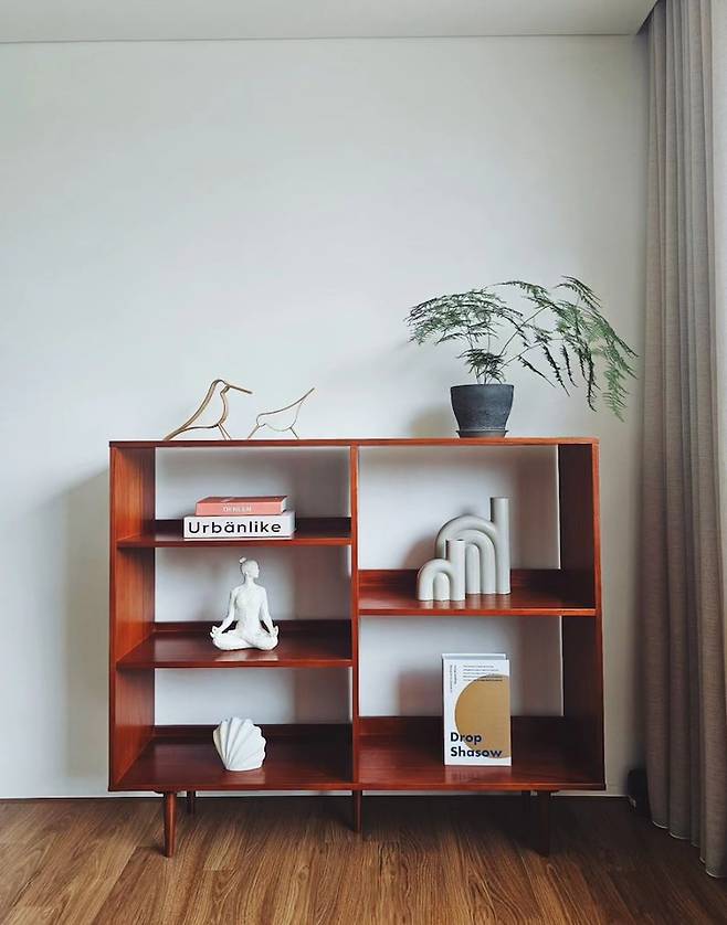 거실과 주방이 맞닿아 있어서 개방감이 중요했어요. 그래서 모든 가구의 높이를 충분히 고려했고, 컬러도 한 브랜드 제품인양 디테일하게 맞춘 편이에요.