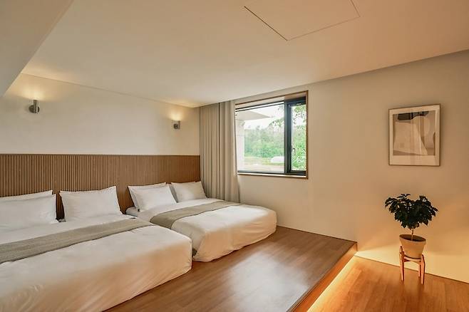 기존에 문이 달려있던 방은 문을 떼어내고 오픈 된 공간으로 변경했어요. 좌식 다도실을 꿈꾸고 만든 공간인데 창밖을 보며 즐기는 수영장 멍이 너무 좋아 의자로 급하게 변경하여 스타일링 해봤습니다.