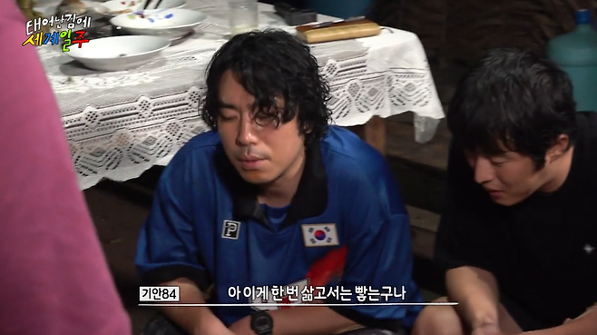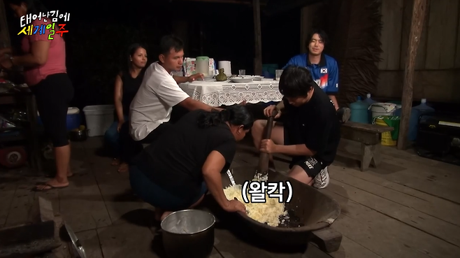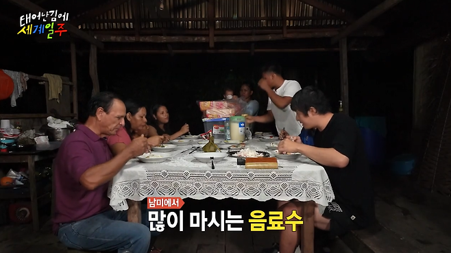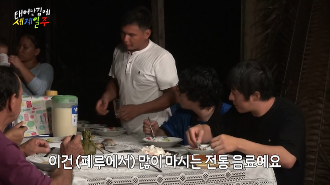 '태어난김에 세계일주'에서 아마존에 사는 가족의 집에 초대를 받은 기안84와 이시언.