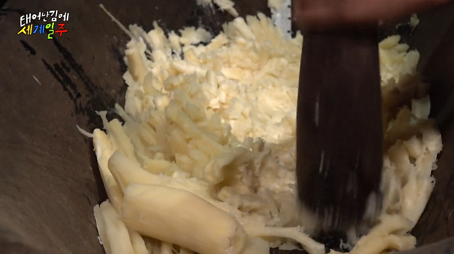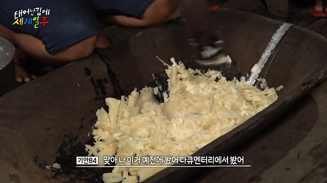 이렇게 입 안에서 씹고 뱉어서 발효시키는 거라고...