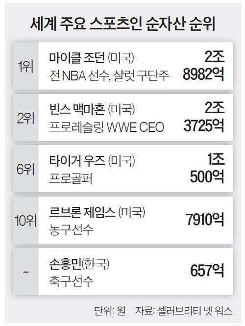 전세계 ‘스포츠 부자’ 1위는 마이클 조던…손흥민은 657억 추정