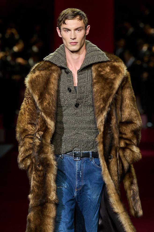 이번 돌체앤가바나의 오프닝을 장식한 모델, 킷 버틀러입니다. 파파라치 콘셉트 쇼의 첫 순서를 장식한 만큼, 수많은 플래시를 받으며 등장했는데요. 퍼 코트와 니트로도 숨겨지지 않던 조각 같은 몸과 강렬한 눈빛으로 패션 피플들을 사로잡았죠. 이미 모델스닷컴에서 2023년의 모델로 선정된 바 있지만, 이제 진짜 본격 전성기 시작이 아닐지. 어렸을 적부터 스키와 럭비를 즐긴 완벽한 운동부 선배 재질인 킷을 지켜봐주세요.