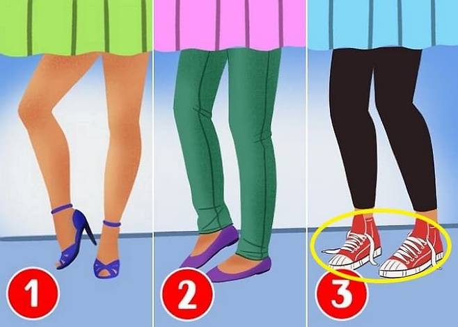 그럼에도 결정적인 힌트는 3번 여성의 신발에 있습니다. 신발을 자세히 살펴보시면 신발끈이 풀어져 있음을 알 수 있습니다.
