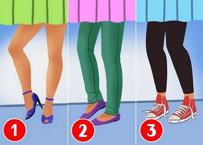 여기 3명의 여성이 있습니다. 그림 속에는 각자 저마다 서로 다른 옷과 신발을 신고 서있는 여성의 모습이 그려져 있는데요.