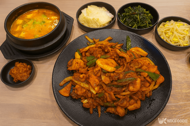 된장찌개는 집된장으로 끓여 진하고 고소해 국물의 깊은 맛이 밥 한 공기를 금세 비우게 한다. 돼지 두루치기는 잡내 없이 담백하고, 고기의 기름기가 잘 빠져 느끼하지 않다. 오징어 두루치기는 불맛이 훨씬 강하고 매콤하다. 두 메뉴 모두 같은 양념을 사용하지만, 불 조절과 재료 특유의 향 덕분에 전혀 다른 맛을 낸다.