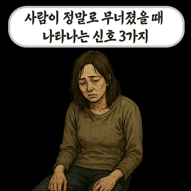 사람이 정말로 무너졌을 때 가장 먼저 나타나는 신호는 깊은 무기력감이다. 평소 즐겁게 하던 일들이 갑자기 의미 없게 느껴지고, 아침에 일어나는 것조차 버거워진다. 이는 단순한 게으름이나 일시적인 피로와는 질적으로 다르다. 마치 내면의 엔진이 완전히 멈춘 것처럼 무엇을 해야 할지 알면서도 몸과 마음이 따라주지 않는 상태가 지속된다.