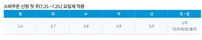 온라인・오프라인 신청이 시작되는 첫 주(7.21.~7.25.)에는 원활한 신청을 위해 출생년도 끝자리 기준으로 ‘요일제’를 적용한다.