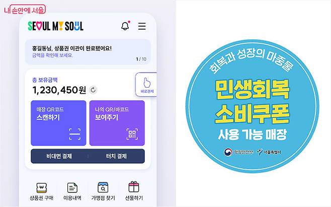 서울사랑상품권은 서울 전역 48만 개 가맹점에서 자유롭게 사용할 수 있다.