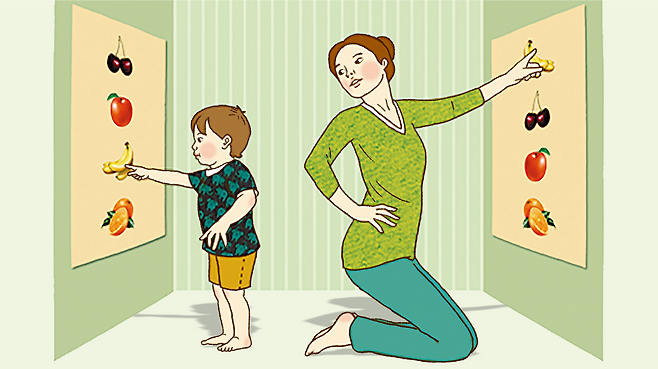 부모는 다양한 말 자극을 제공해 아이 언어 경험을 높여줄 수 있다. 생후 24개월을 넘으면 한층 발전한 문법도 이해하기 시작한다. “할머니에게 사과를” “할아버지에게 딸기를” 같이 조사의 쓰임을 알게 되므로 이런 표현을 반복해서 말해준다. “먹을래?” 외에도 “안 먹을래?” 같은 부정어가 어떻게 쓰이는지도 깨닫기 시작한다. 사물 이름뿐 아니라 “많아, 적어” “커, 작아” “제일 커” “가장 작아” 등 상대 개념도 인식하는 시기다. 소유격도 이해할 수 있으므로 “엄마 코 어디 있어?” “아빠 눈 어디 있지?”라고 아이에게 묻는 놀이를 할 수 있다. 두 개의 사과를 아기 앞에 놓고 “똑같아” “같은 거야”라고 말해주면, 나중에 사과가 아닌 다른 사물이 같은 방식으로 놓여 있을 때도 ‘같다’라고 인식할 수 있게 된다. 사과·배·딸기 등 여러 사물을 늘어놓고 비교해주다 보면 ‘다름’의 개념을 형성할 수 있을 것이다.